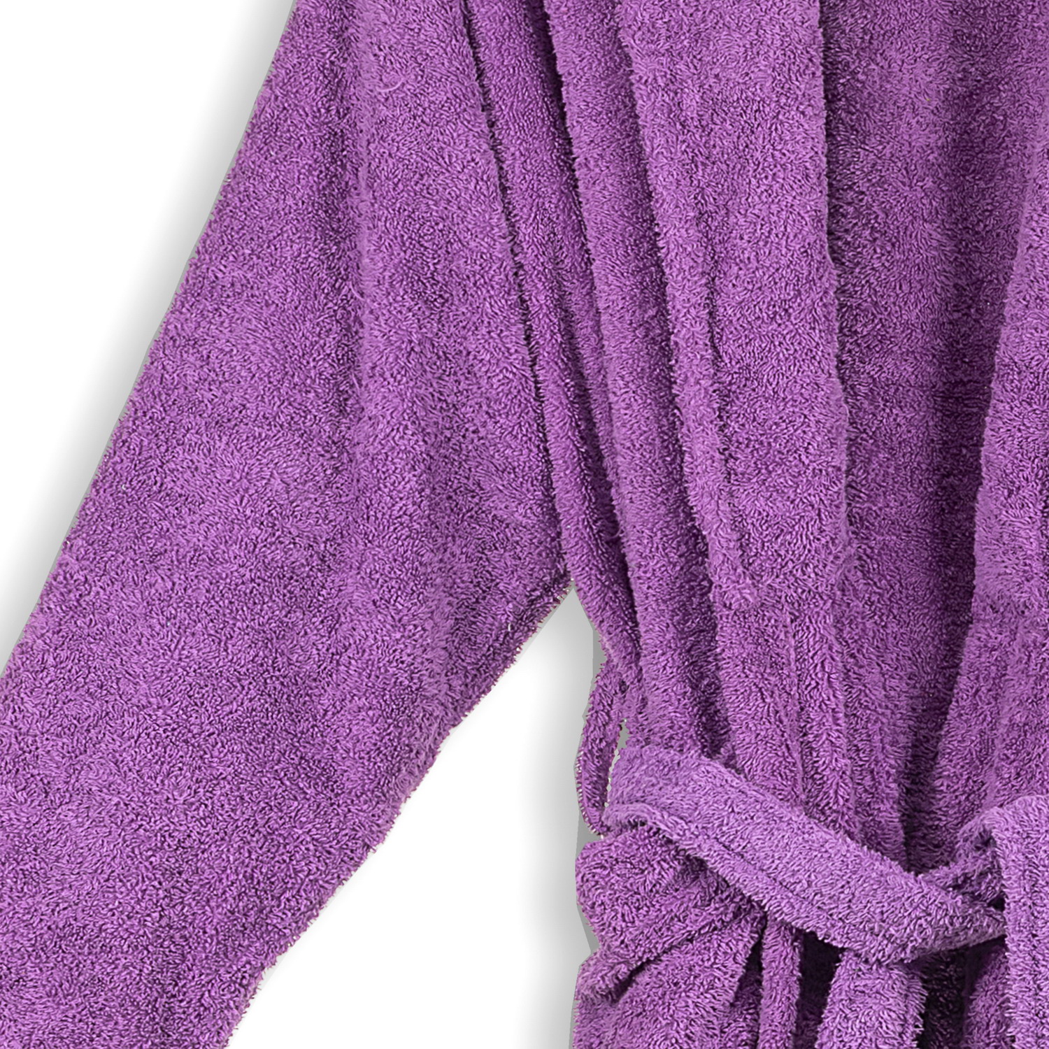 Albornoz morado liso unisex de rizo disponible en tallas S, M, L y XL. 100% algodón con una densidad de 380 grs/m2. Calidad al mejor precio.