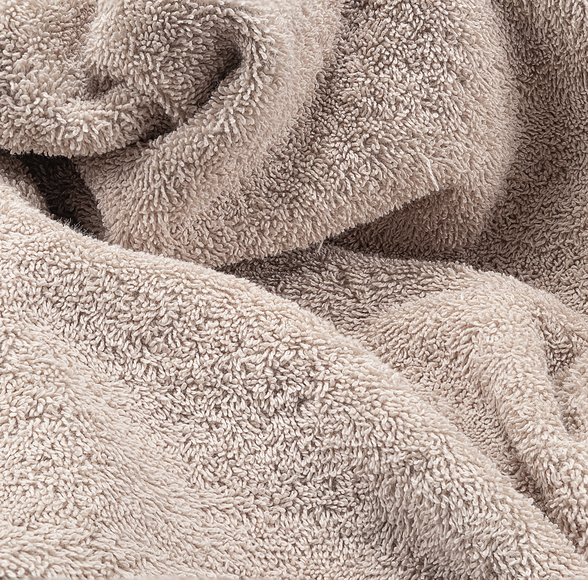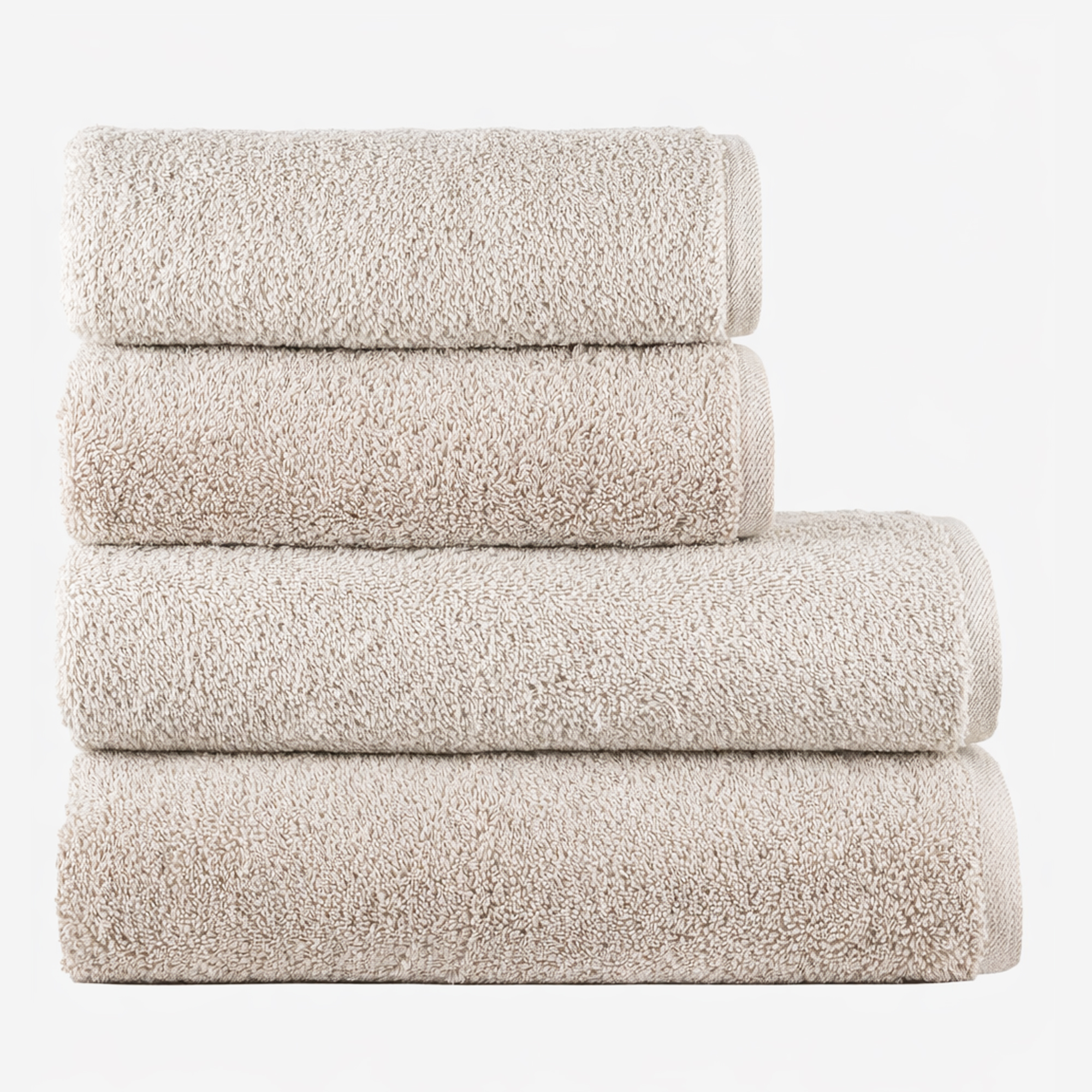 Juego de 4 toallas de rizo EXCLUSIVE color arena en 600grs/m2, 100% algodón peinado.