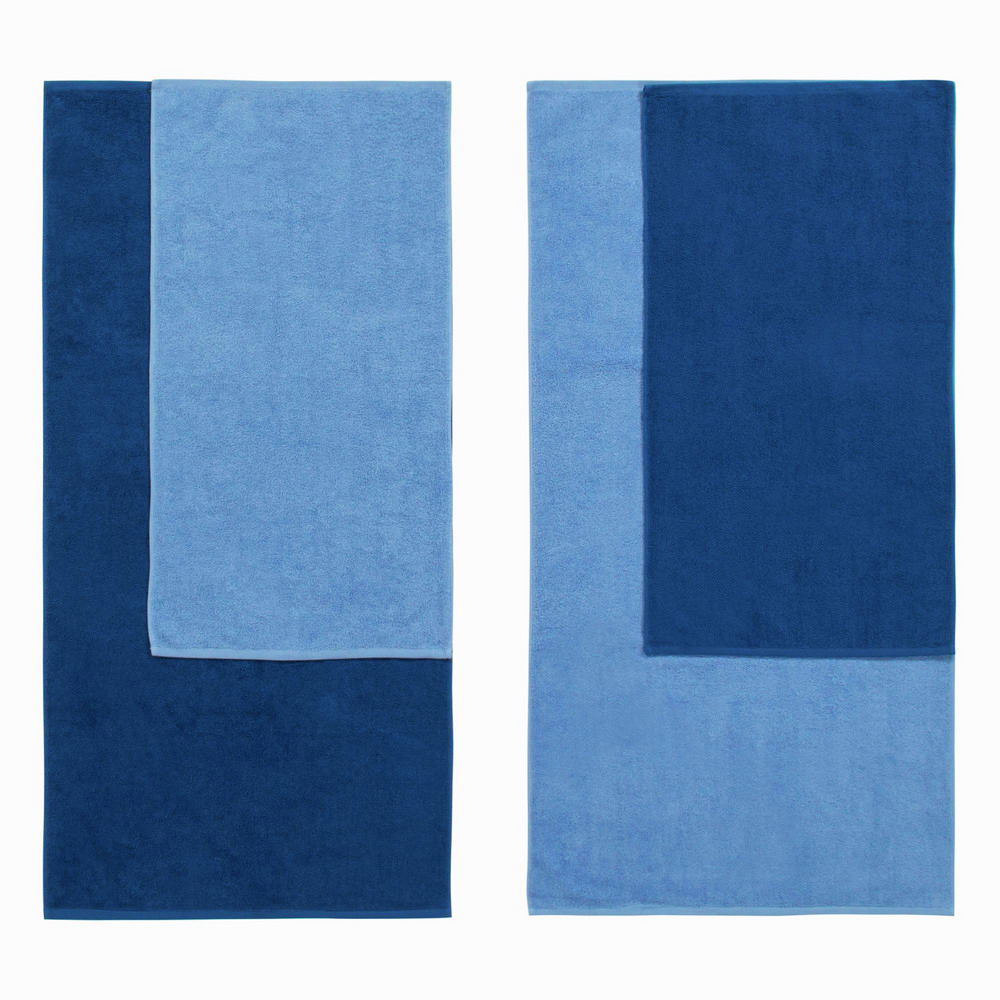 Juego de 4 toallas de rizo EXCLUSIVE color azul mar y azul náutico en 600grs/m2.