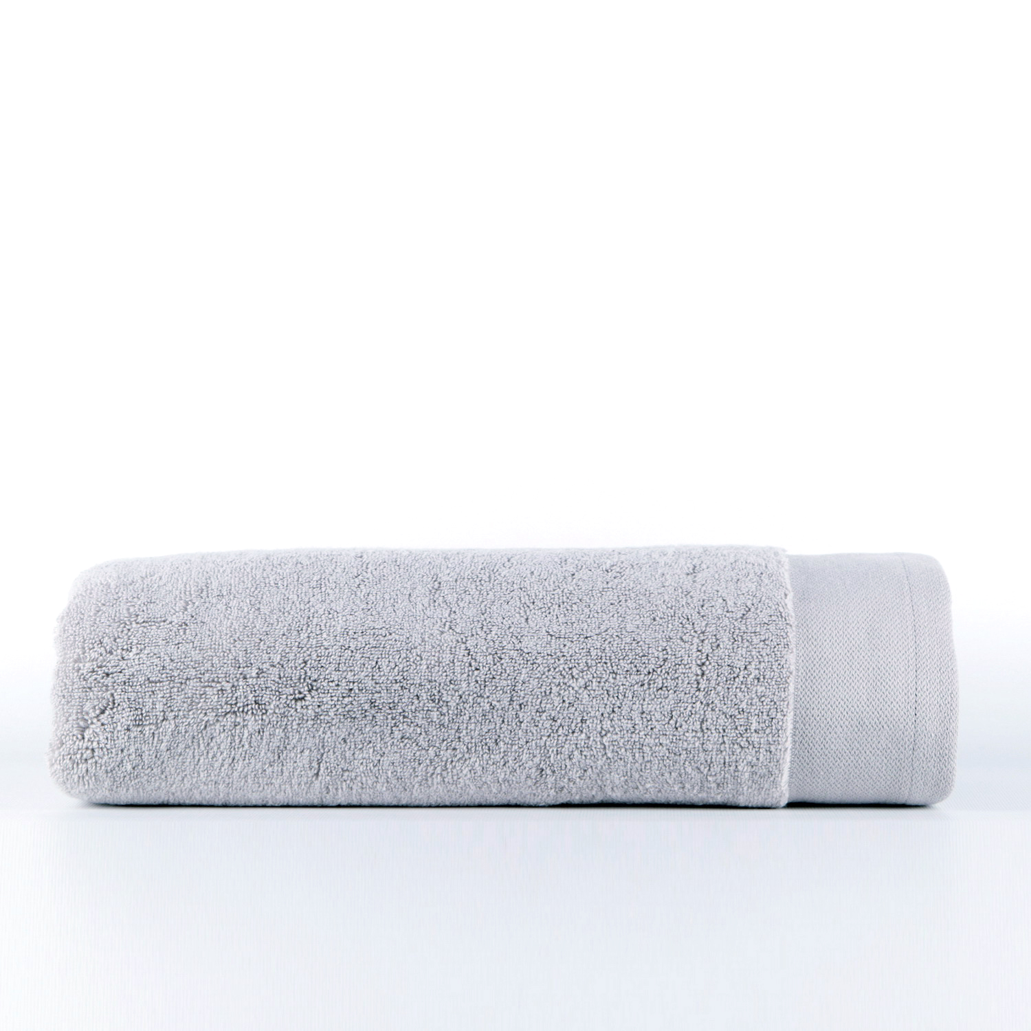 Juego 4 toallas de baño modelo LUXURY blanco y gris. 100% algodón Zero Twist con una densidad de 600grs/m2.