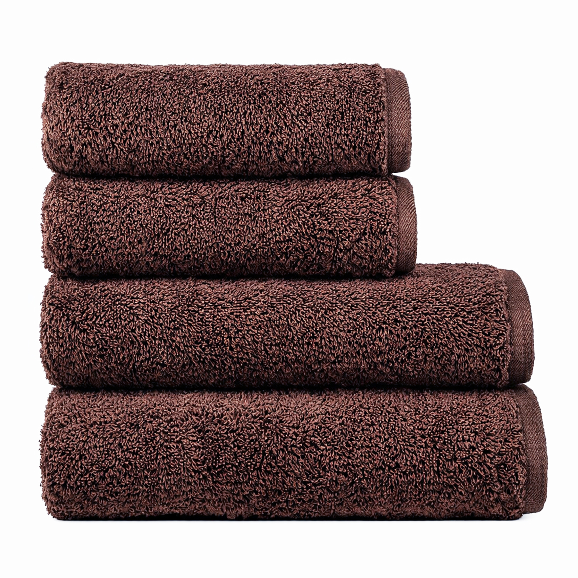 Juego de 4 toallas EXCLUSIVE chocolate, liso, de rizo. 100% algodón peinado con una densidad de 600 grs/m2. Calidad al mejor precio.