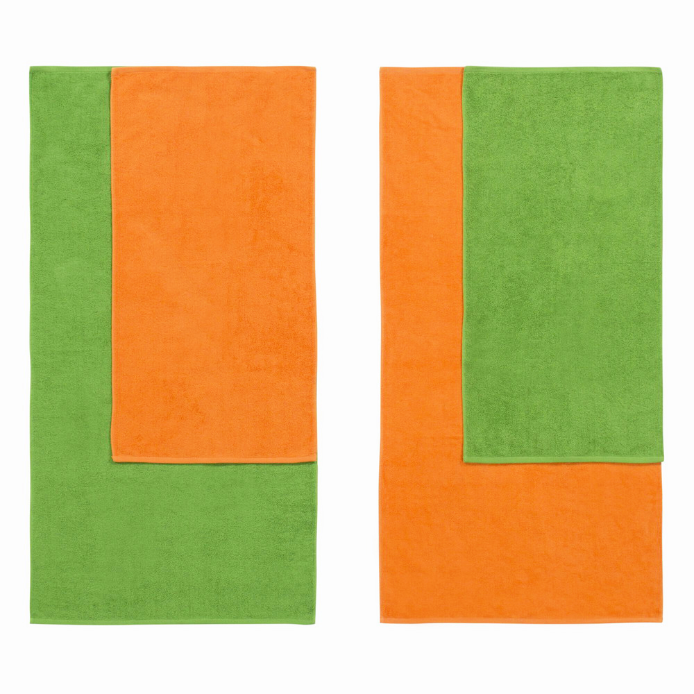 Juego de 4 toallas de rizo EXCLUSIVE color naranja y pistacho en 600grs/m2.