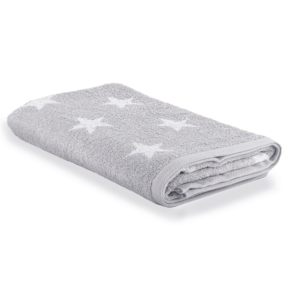 Juego de 4 toallas STARS plata y azul nilo, de rizo. 100% algodón con una densidad de 500 grs/m2. Calidad al mejor precio.