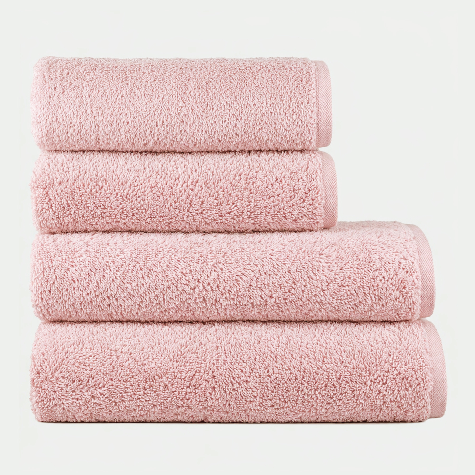 Juego de 4 toallas de rizo EXCLUSIVE color rosa en 600grs/m2, 100% algodón peinado.