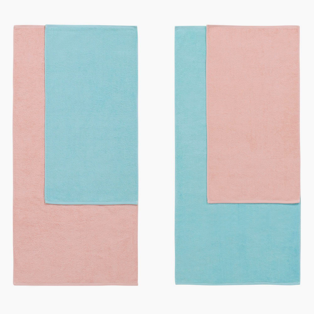 Juego 4 toallas rosa y azul celadón 100% Algodón