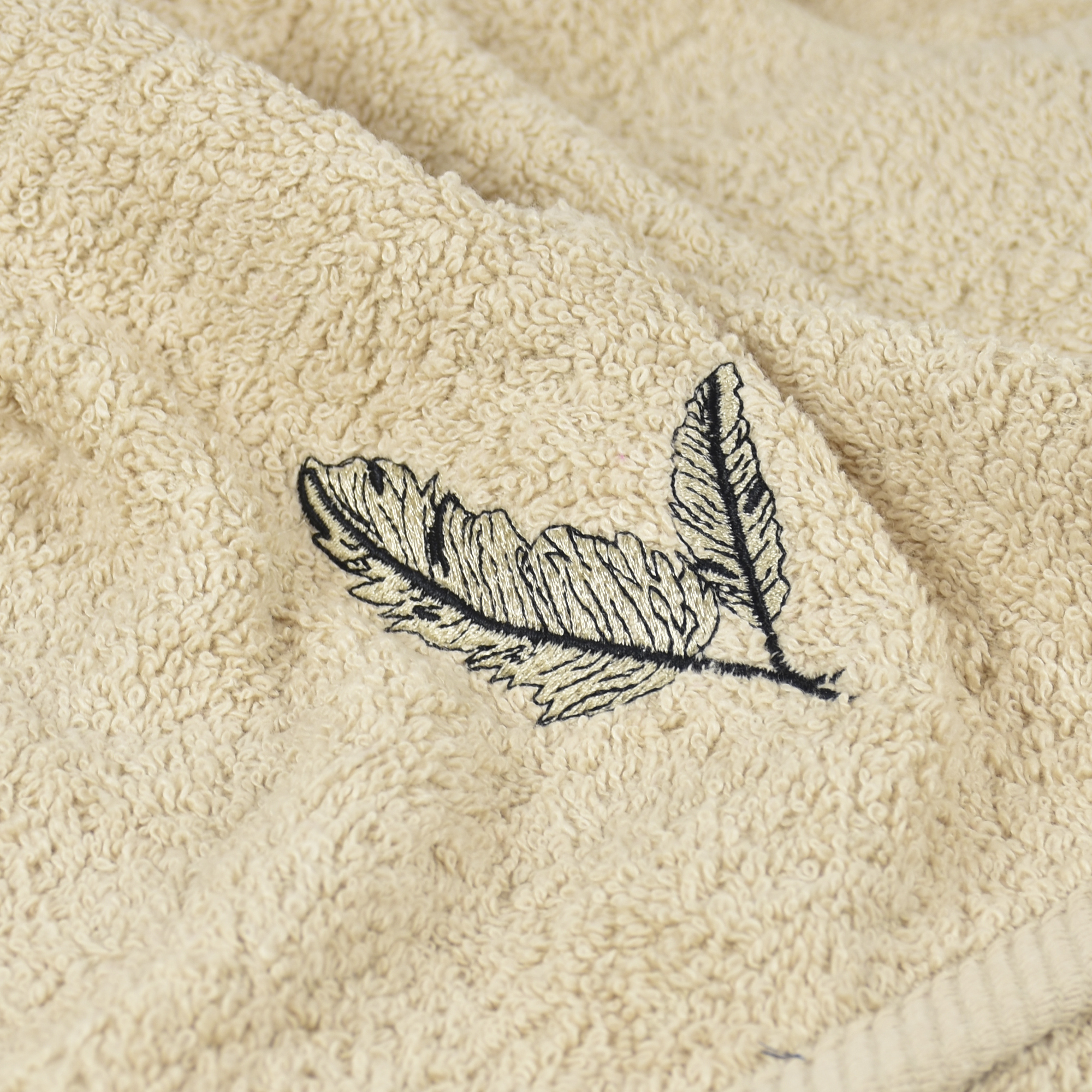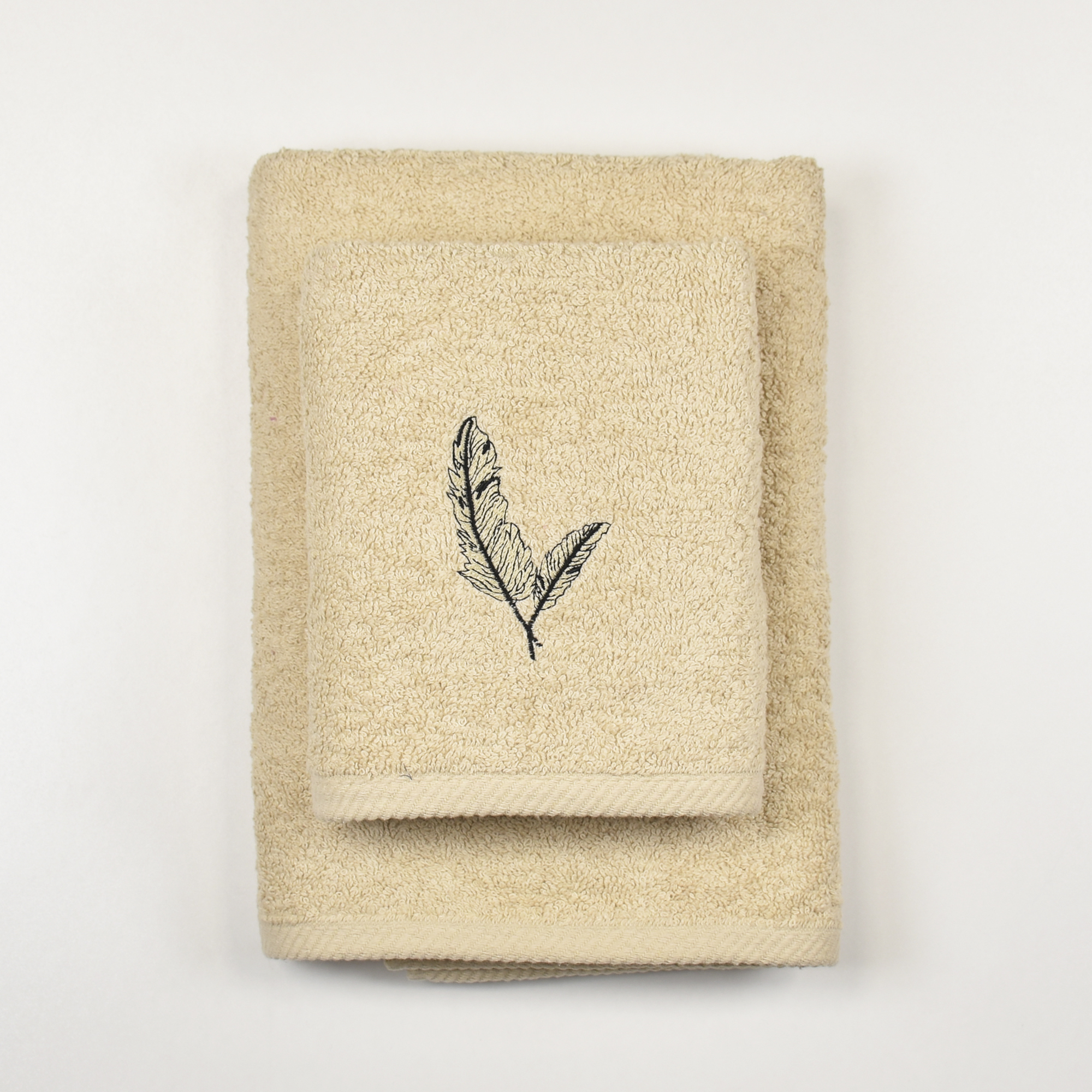 Juego de 2 toallas bordados color beige de 550grs/m2.