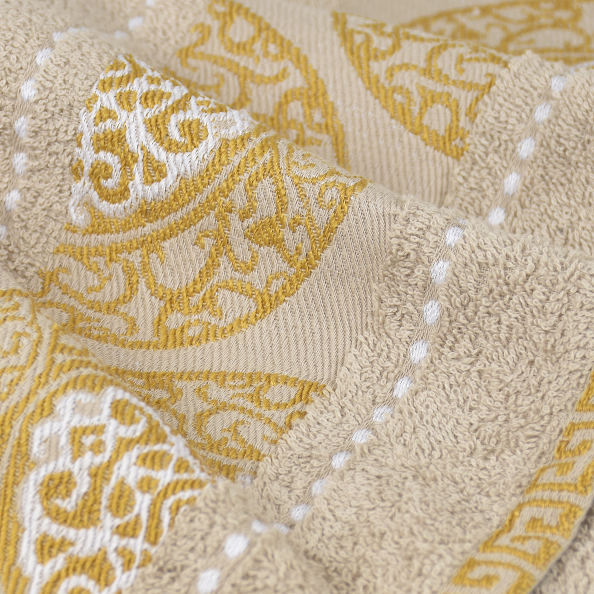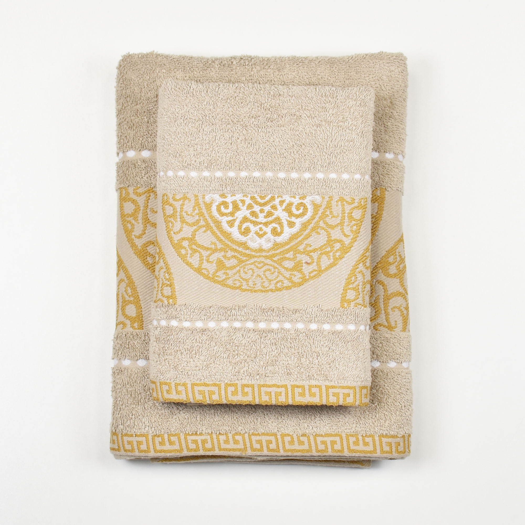 Juego de 2 toallas cenefa jacquard color beige de 400grs/m2.