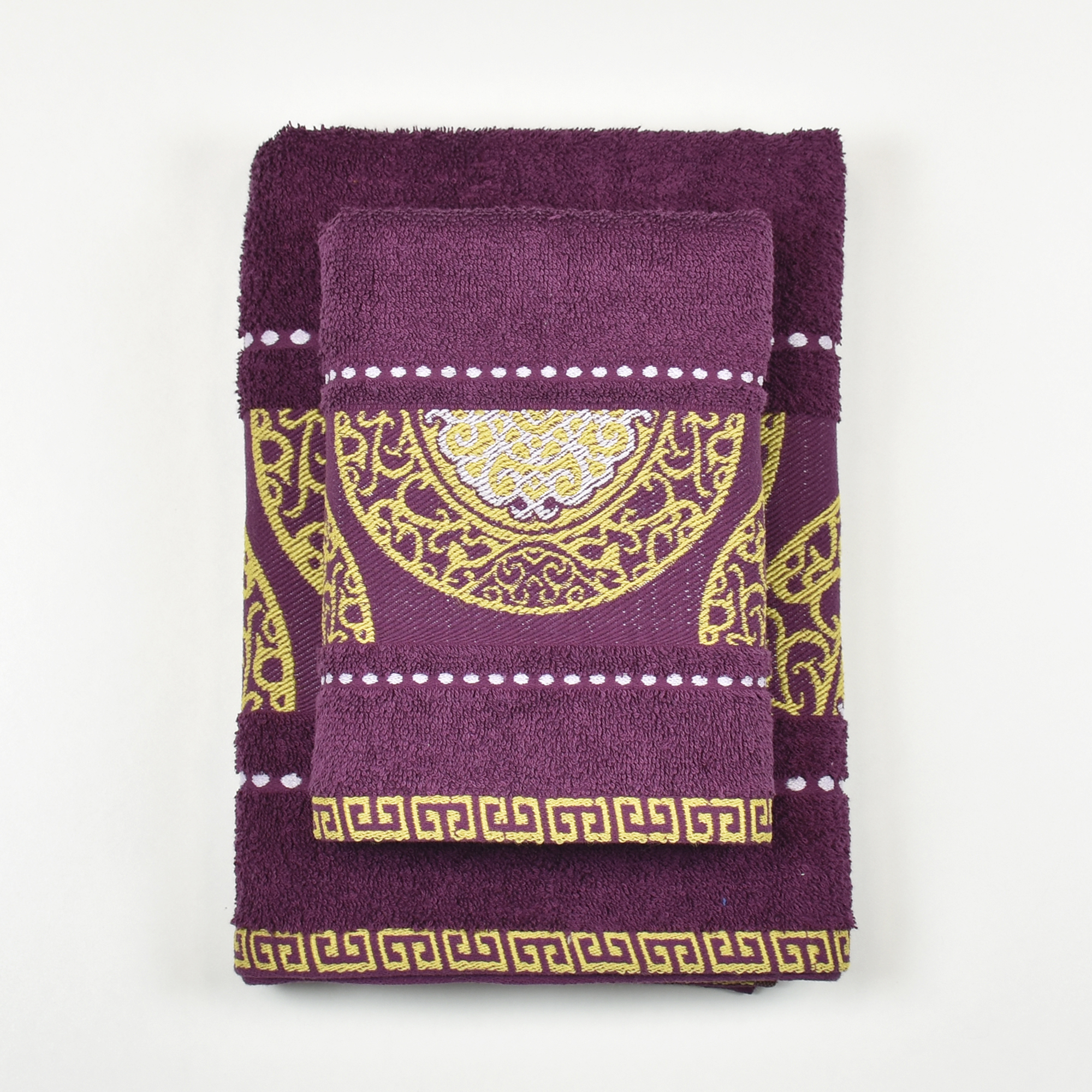 Juego de 2 toallas cenefa jacquard color burdeos de 400grs/m2.