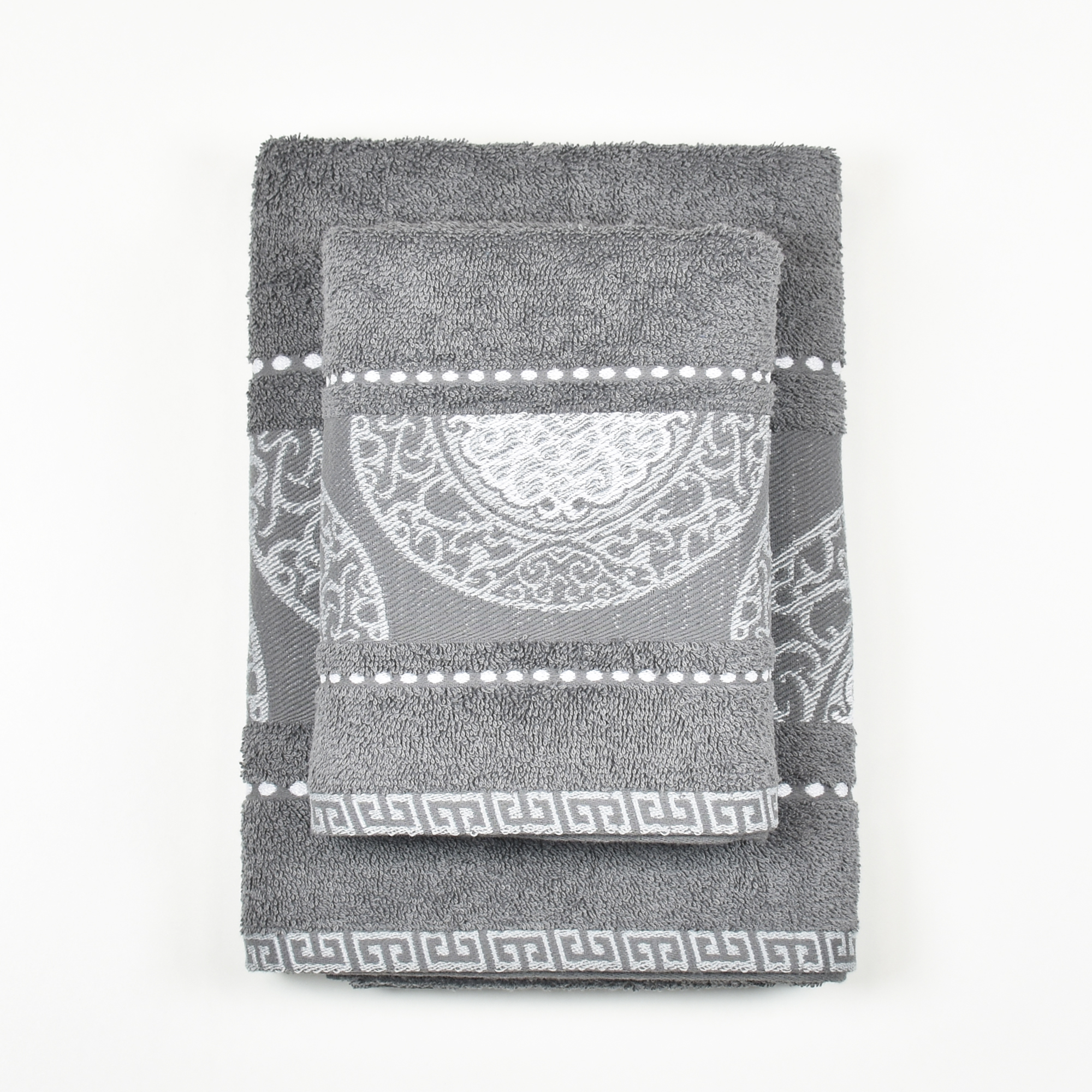 Juego de 2 toallas cenefa jacquard color gris de 400grs/m2.