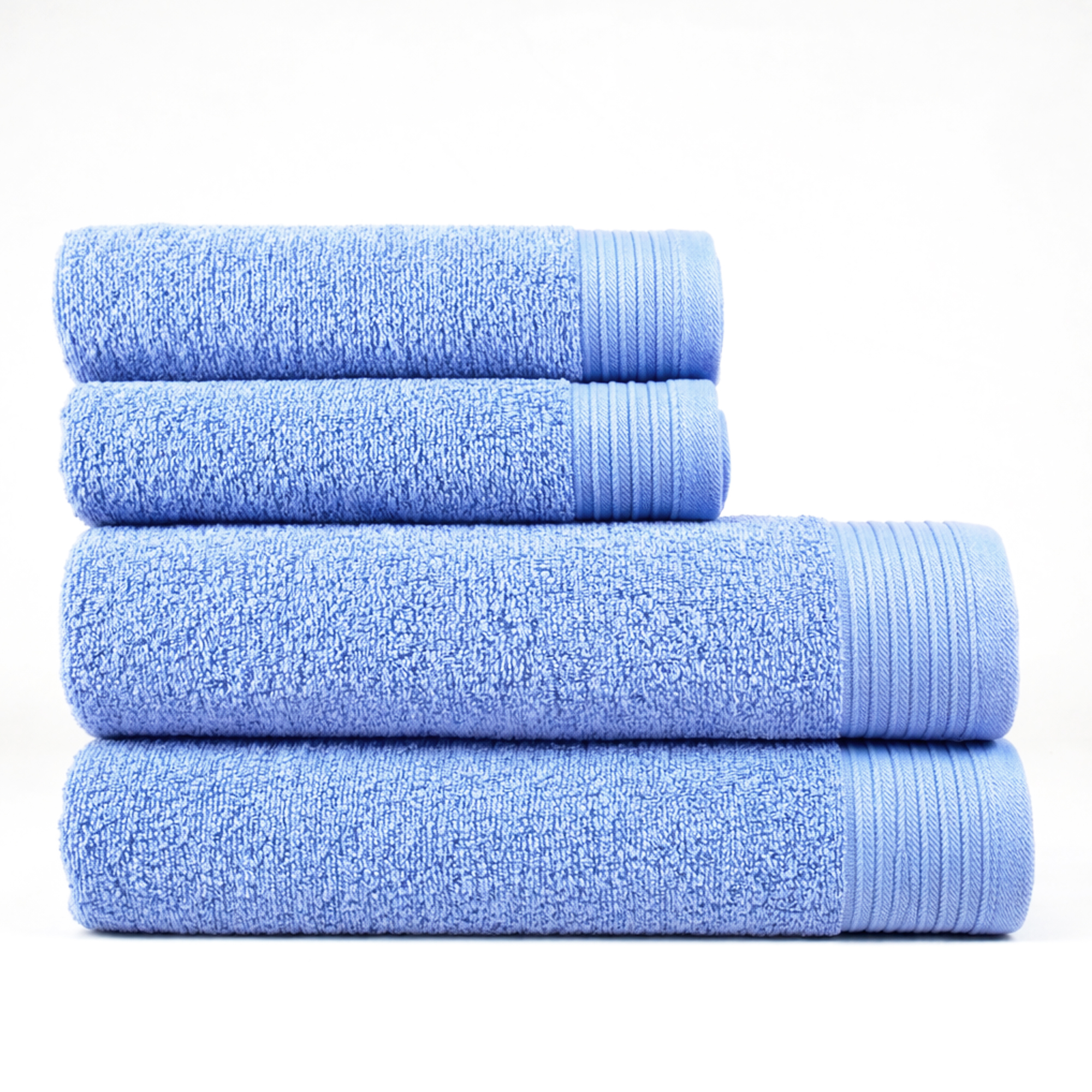 Juego de 4 toallas BASIC de rizo color azul mar en 450grs/m2.