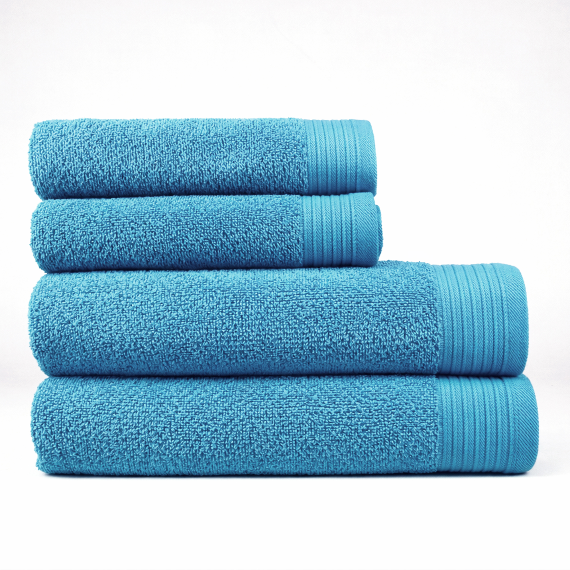Juego de 4 toallas azul océano liso de rizo. 100% algodón con una densidad de 450 grs/m2. Calidad al mejor precio.