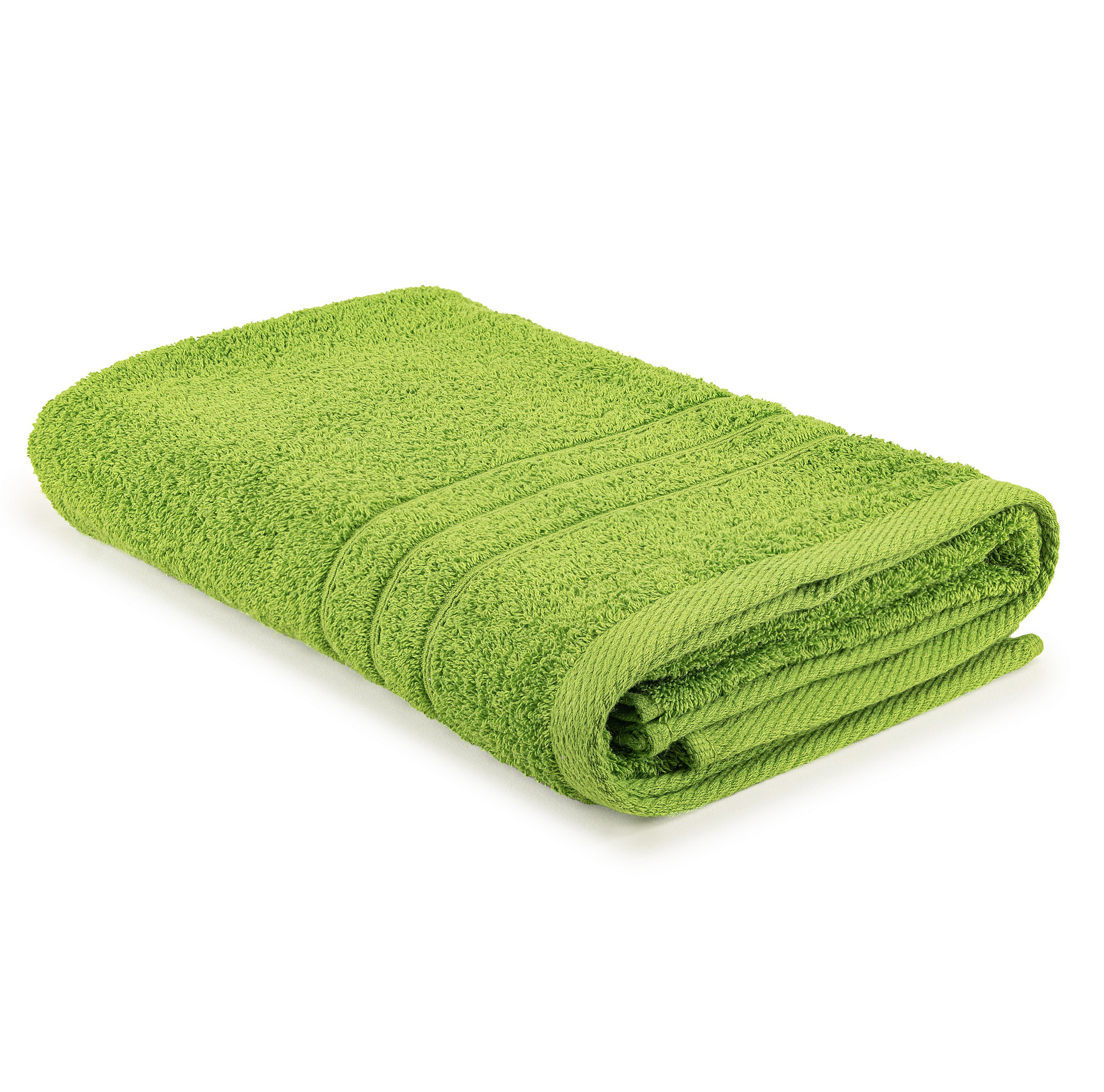 Juego de 4 toallas fucsia y pistacho liso de rizo. 100% algodón con una densidad de 400 grs/m2. Calidad al mejor precio.