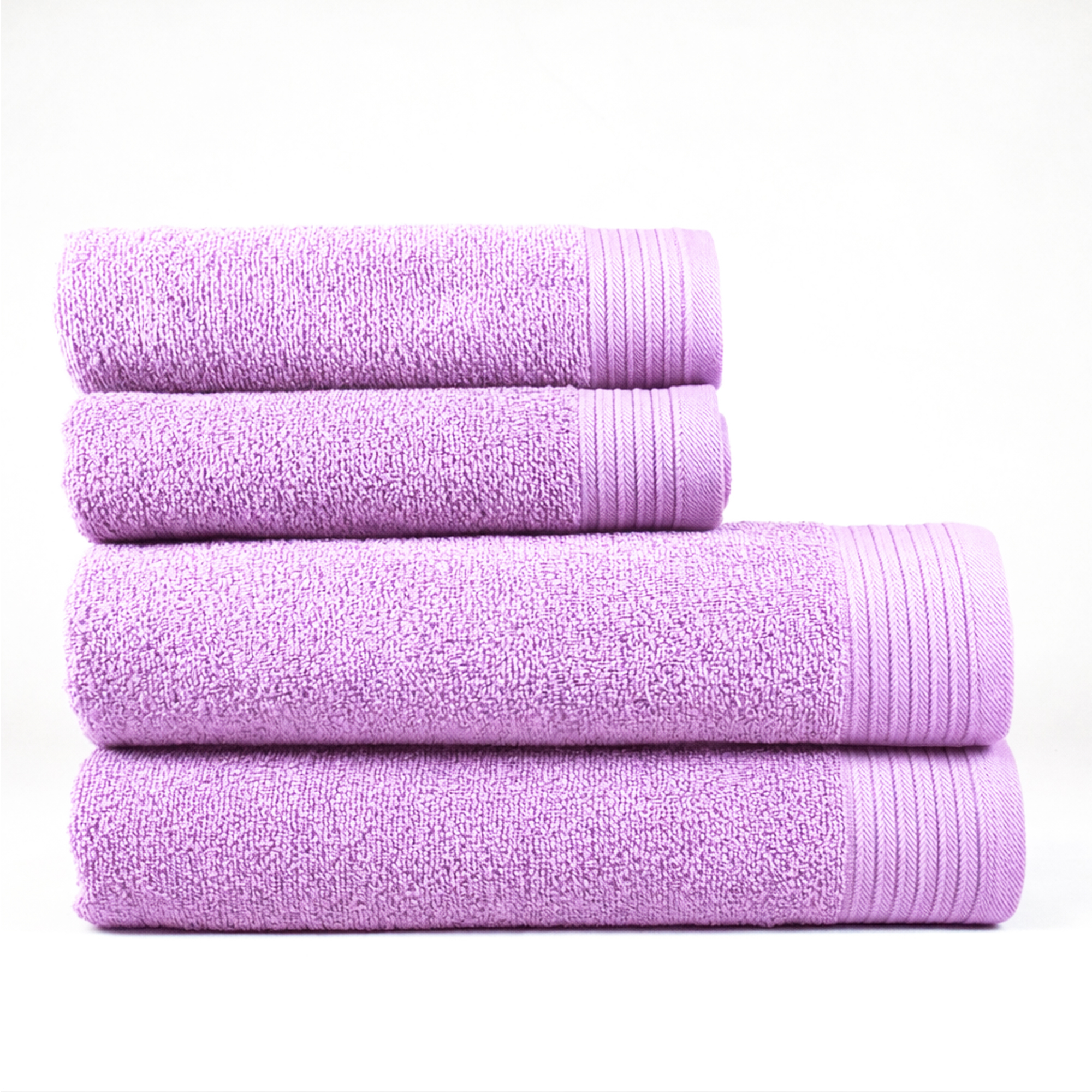 Juego de 4 toallas malva liso de rizo. 100% algodón con una densidad de 450 grs/m2. Calidad al mejor precio.
