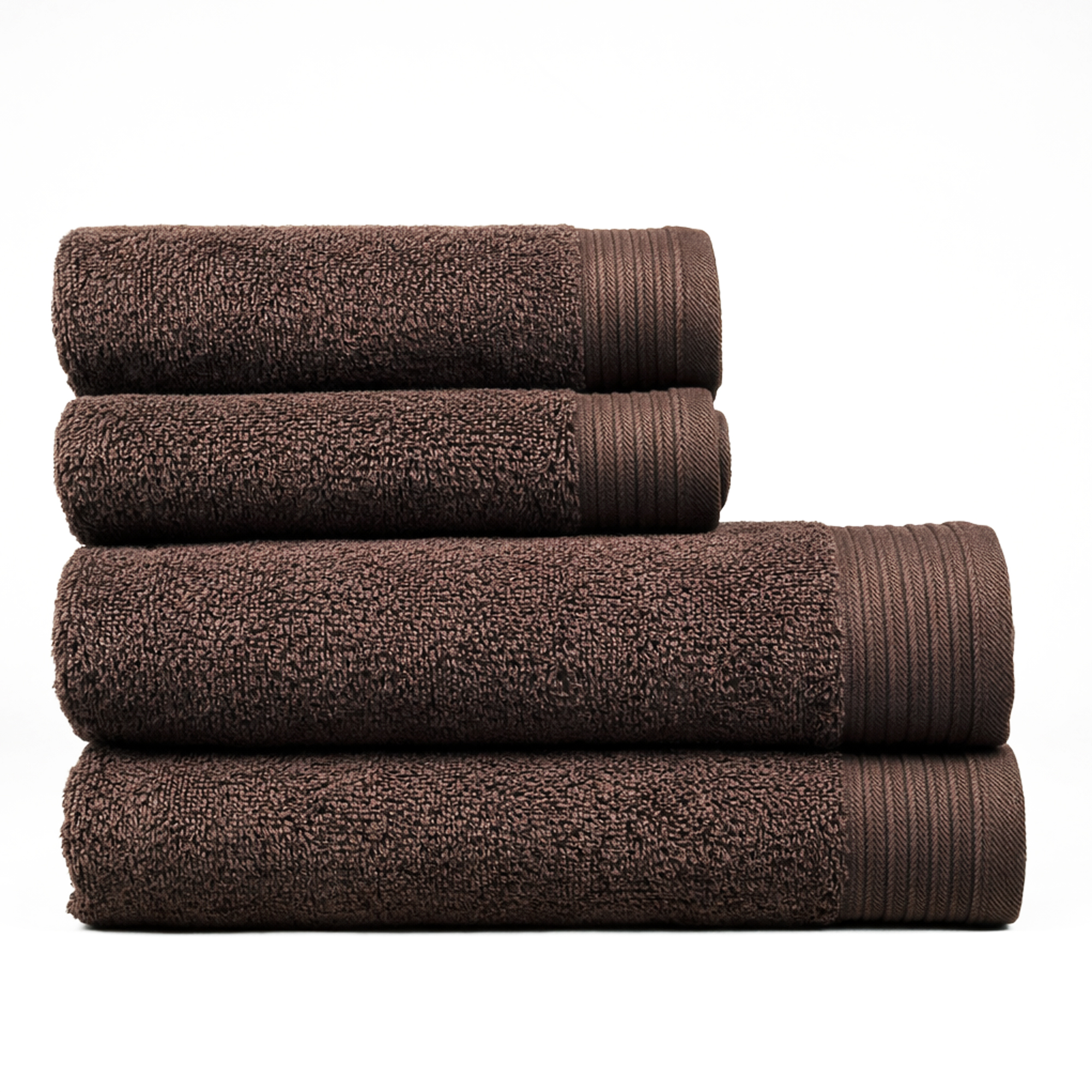 Juego de 4 toallas BASIC de rizo color chocolate en 450grs/m2.