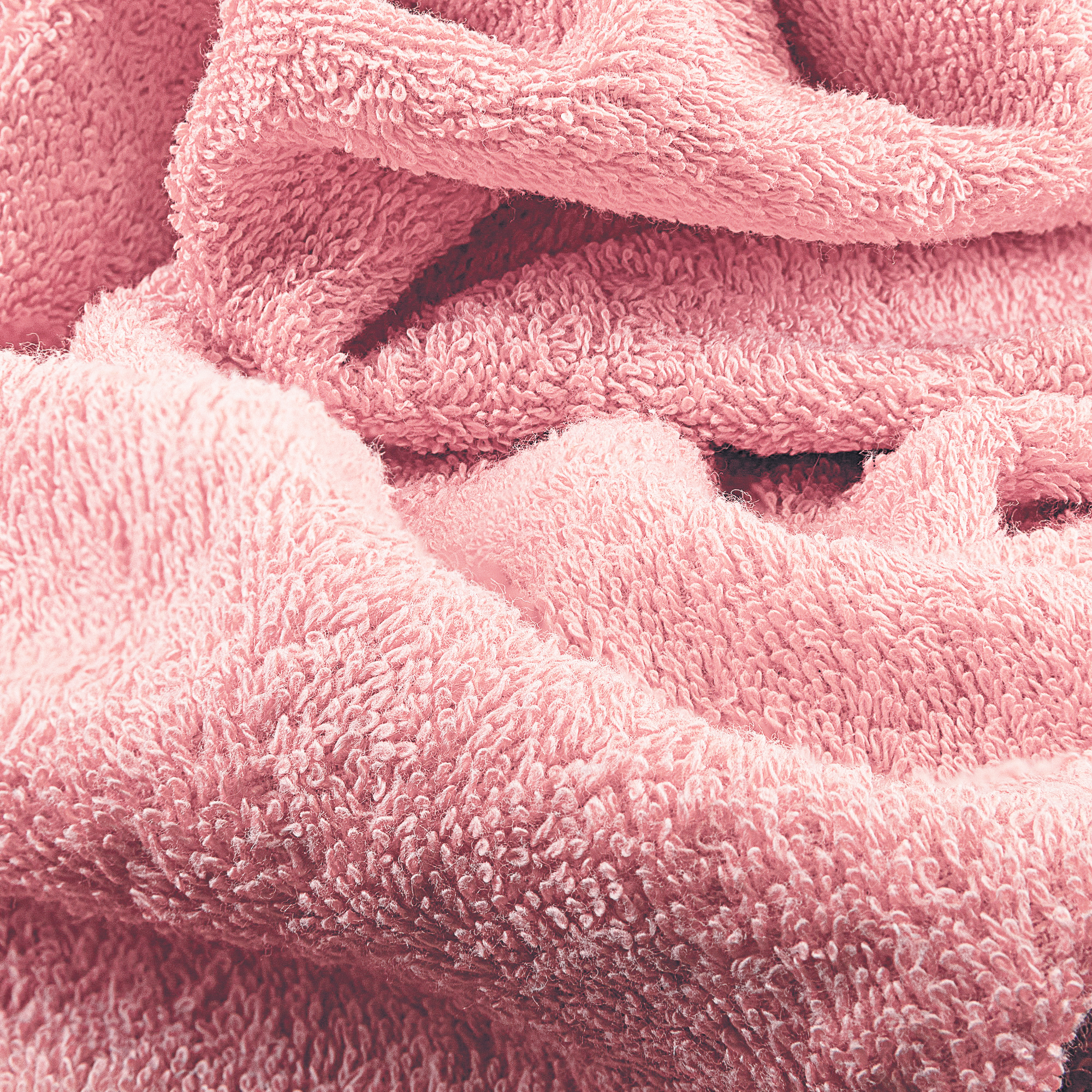 Juego de 4 toallas de rizo color rosa y azul celadón en 400grs/m2.