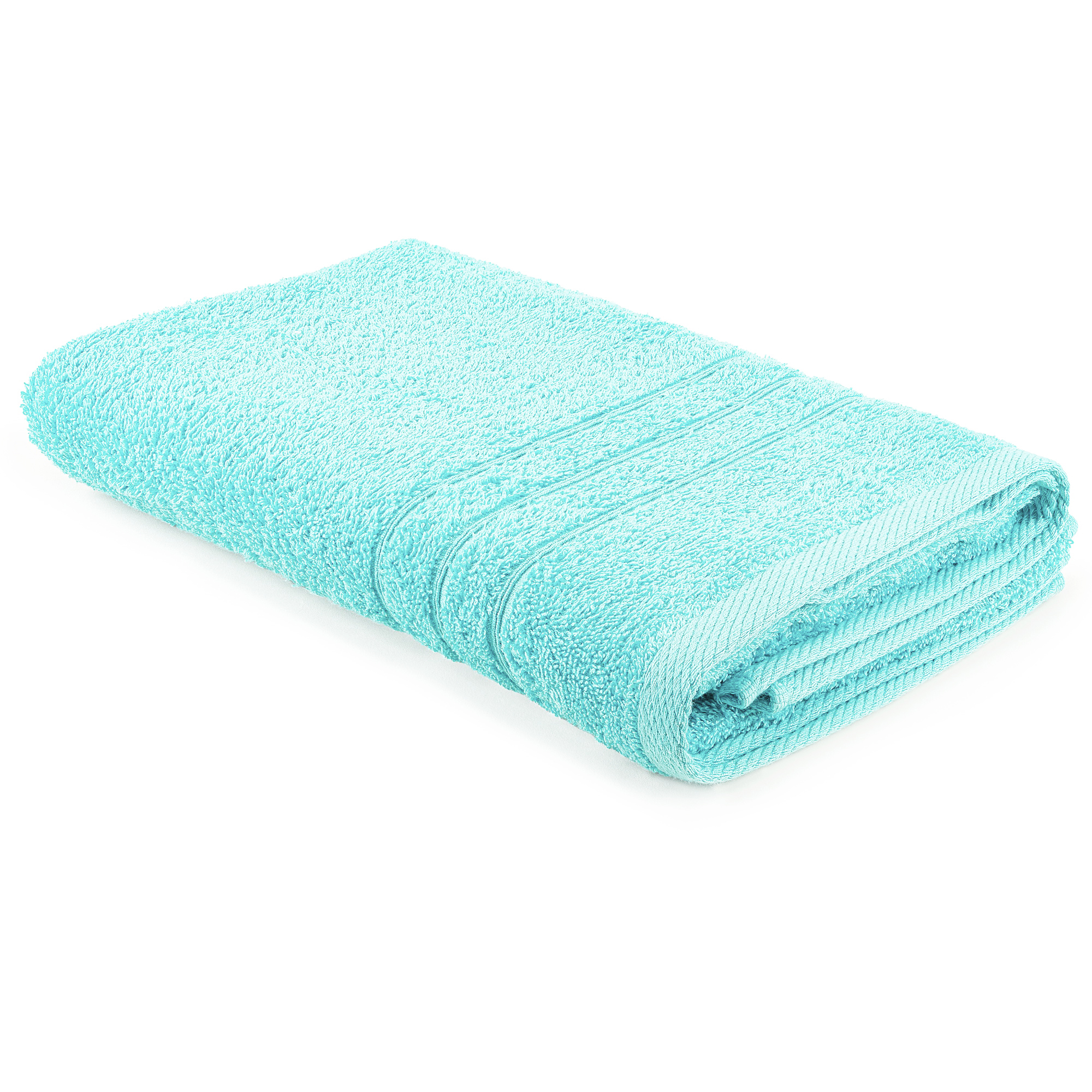 Juego de 4 toallas rosa y azul celadón liso de rizo. 100% algodón con una densidad de 400 grs/m2. Calidad al mejor precio.