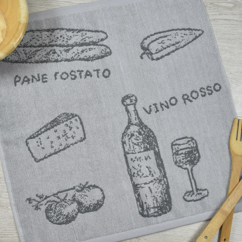 Set 4 Paños de cocina rizo jacquard modelo CHEESE de en  50x50cm. 100% algodón con una densidad de 450 grs/m2.