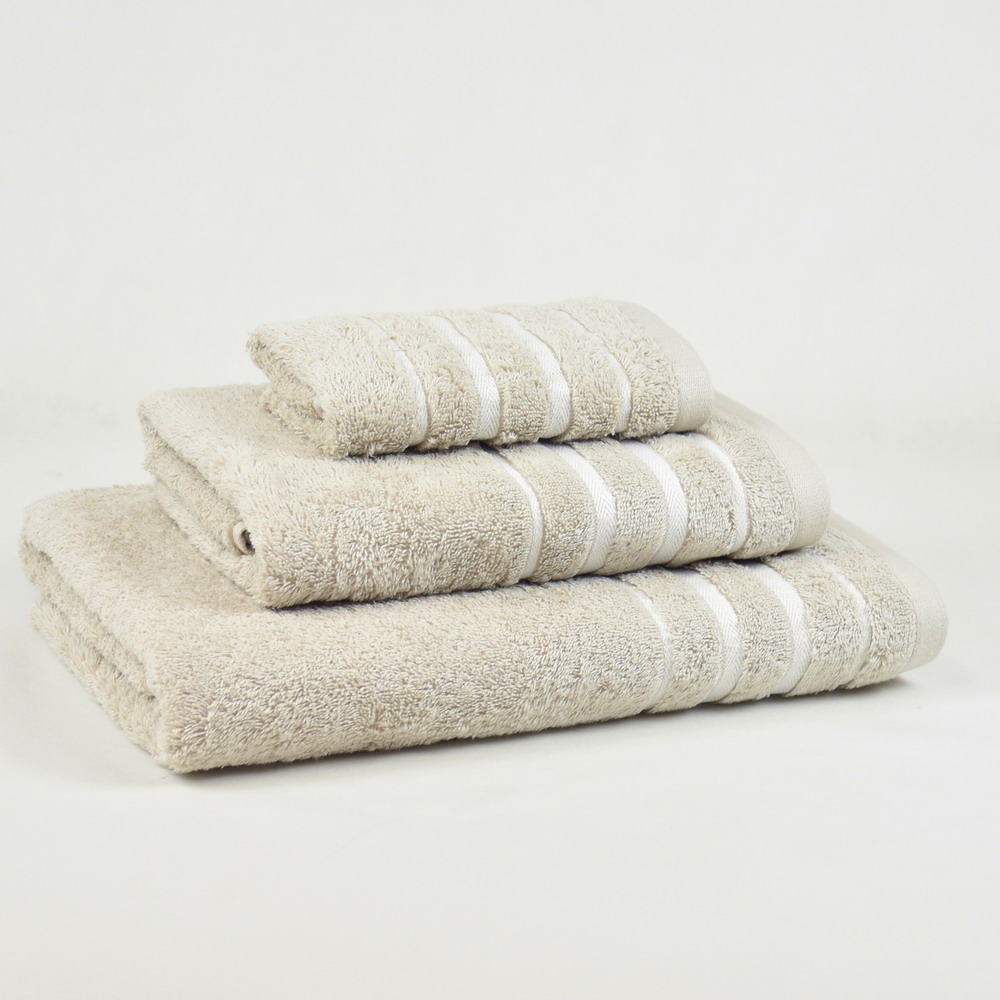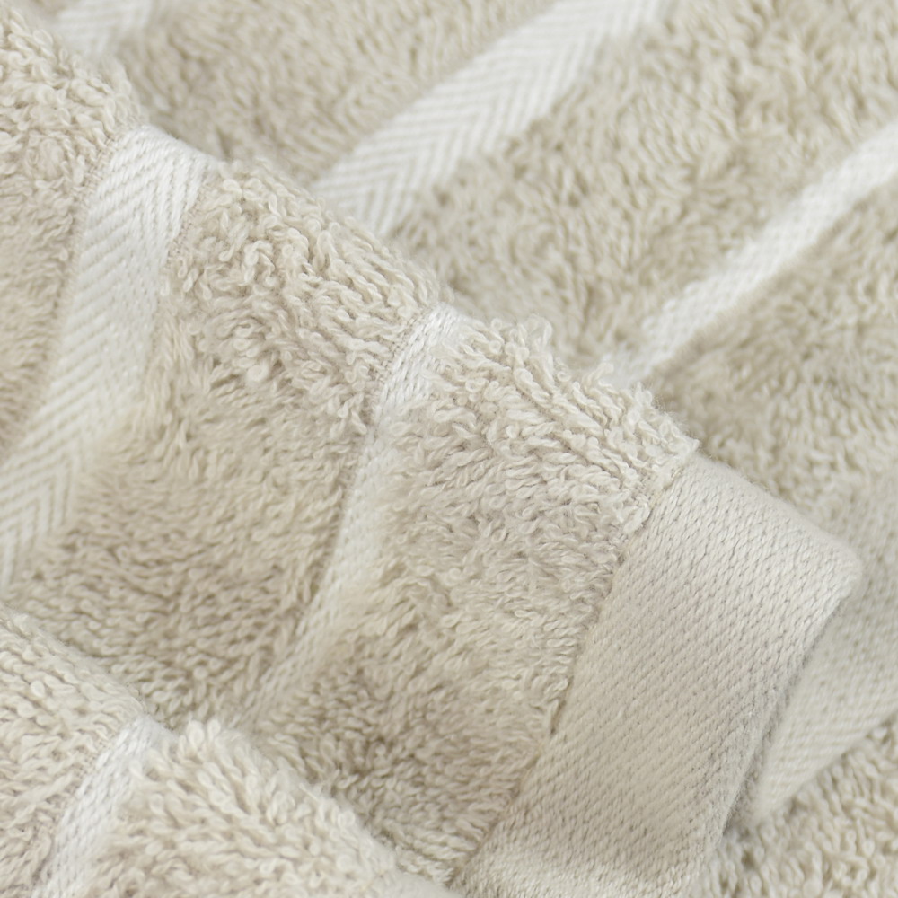 Toalla de rizo color arena CRETA de 500grs/m2 con una elegante cenefa de jacquard.
