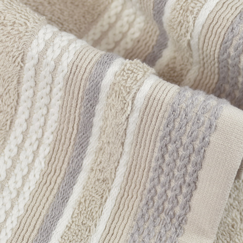 Toalla de rizo color arena RODAS de 500grs/m2 con una elegante cenefa de jacquard.