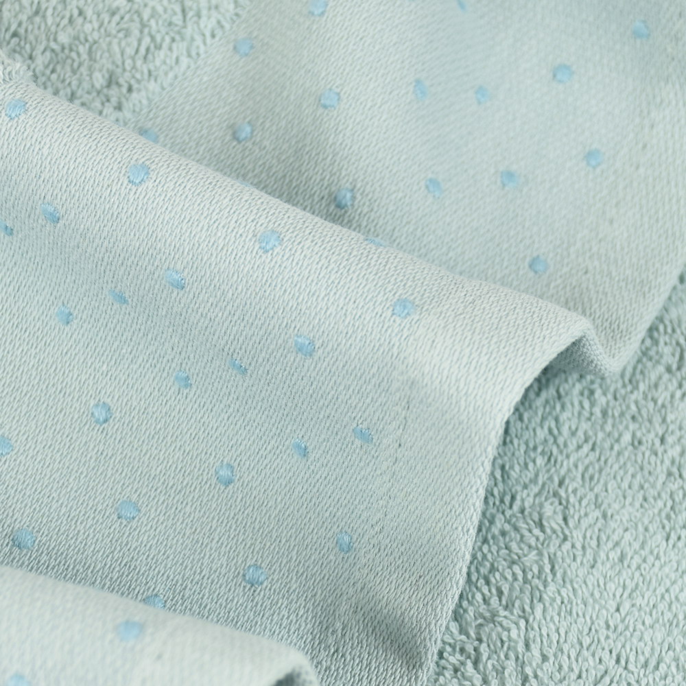 Toalla de rizo para el baño CRETA con elegante cenefa en jacquard, color azul nilo, disponible en tamaño tocador, lavabo, ducha y baño 100% algodón con una densidad de 500 grs/m2. Muy suave y absorbente.