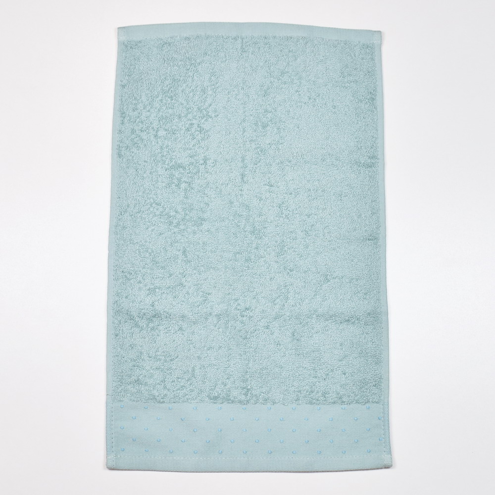 Toalla de rizo color azul nilo MYKONOS de 500grs/m2 con una elegante cenefa de jacquard.