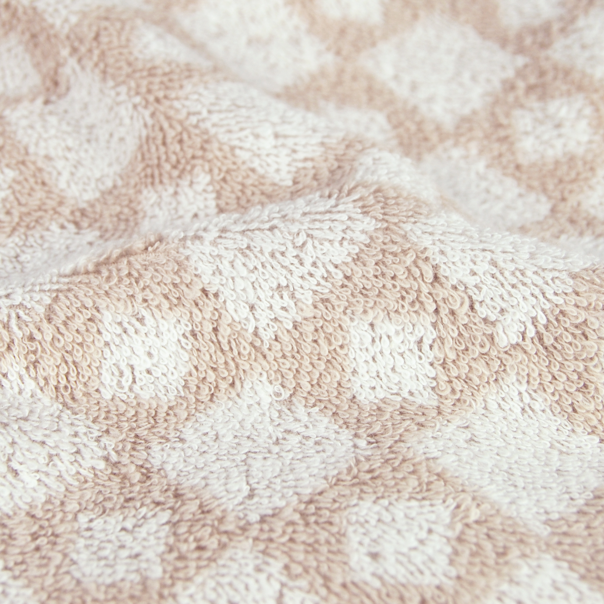 Toalla de rizo jacquard color beige GEO, disponible en tamaño 70×140, de 500grs/m2.