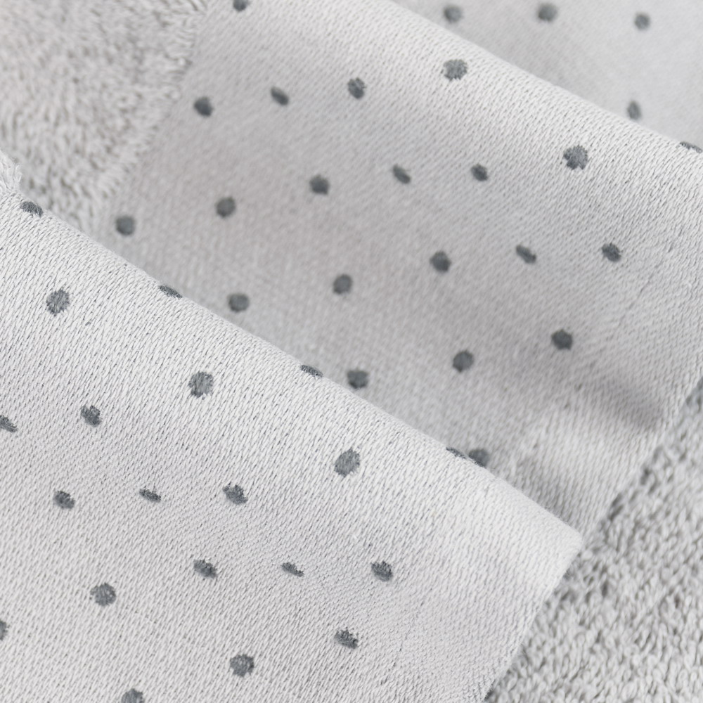 Toalla de rizo para el baño CRETA con elegante cenefa en jacquard, color gris, disponible en tamaño tocador, lavabo, ducha y baño 100% algodón con una densidad de 500 grs/m2. Muy suave y absorbente.