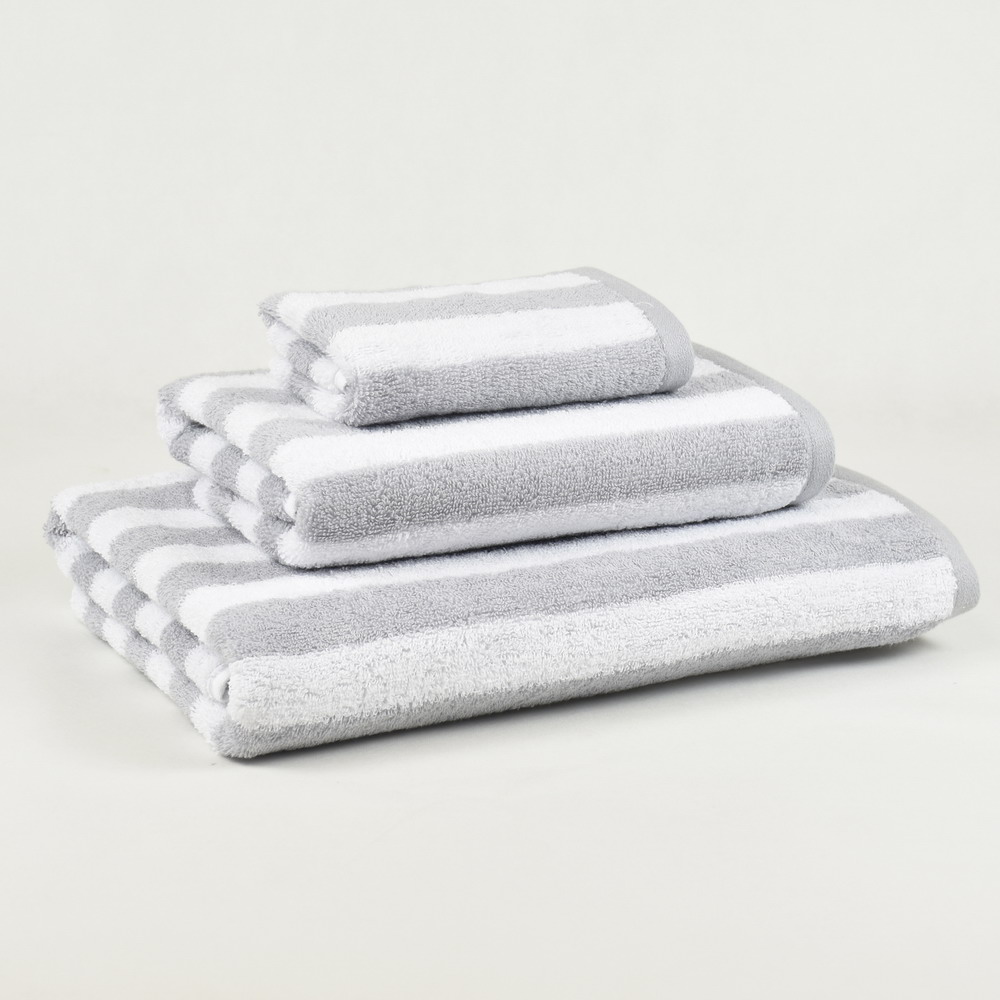 Toalla de rizo para el baño gris plata STRIPES disponible en tamaño tocador, lavabo, ducha y baño 100% algodón con una densidad de 500 grs/m2 Muy suave y absorbente