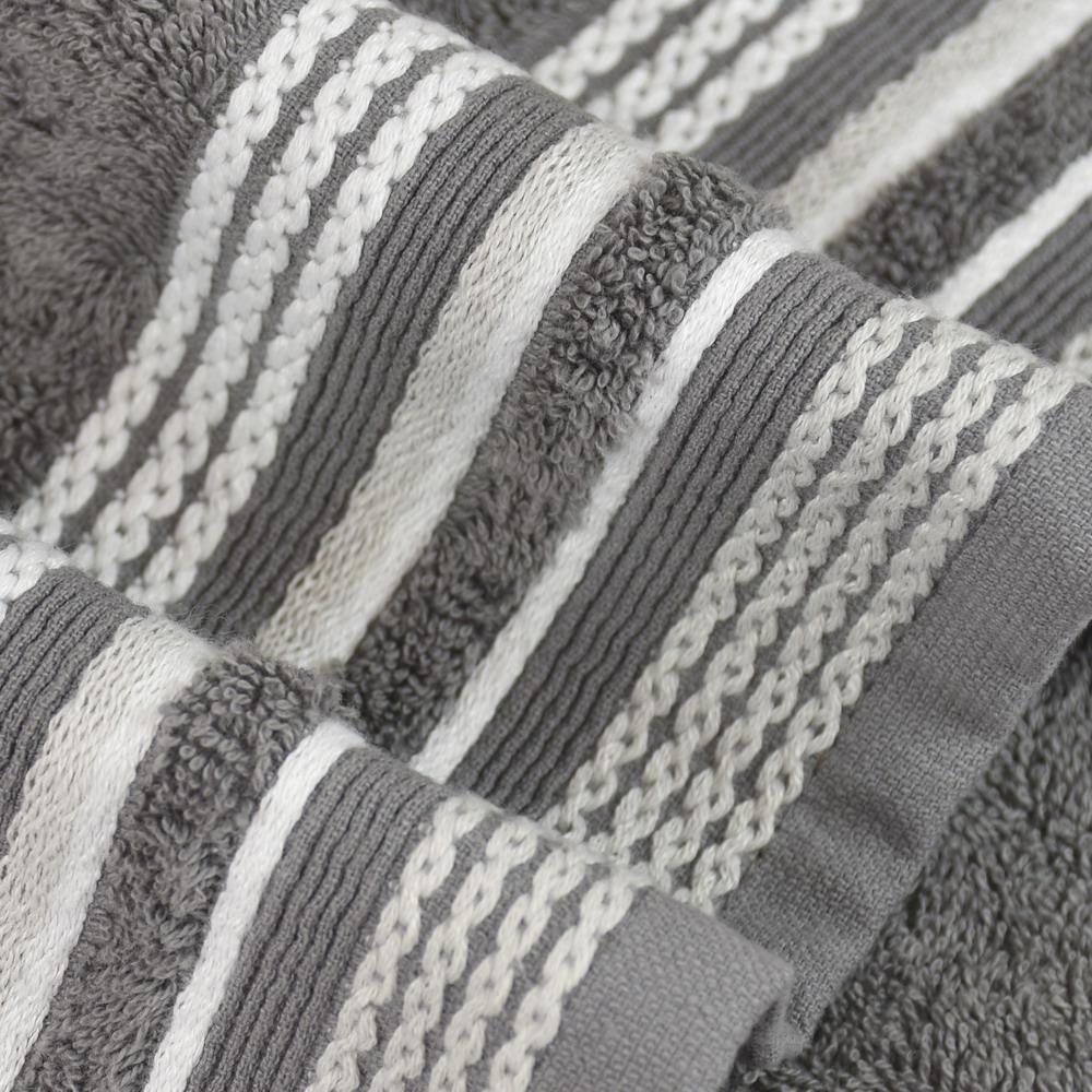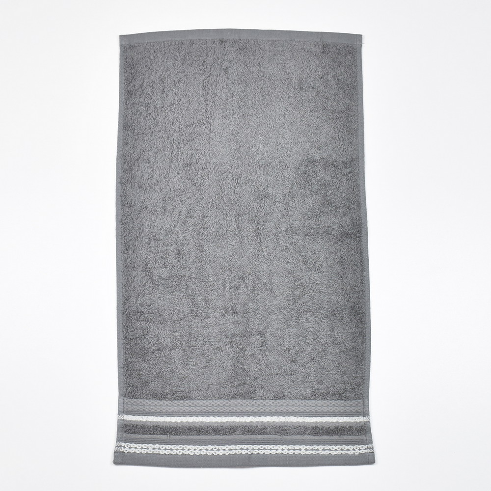 Toalla de rizo color gris RODAS de 500grs/m2 con una elegante cenefa de jacquard.