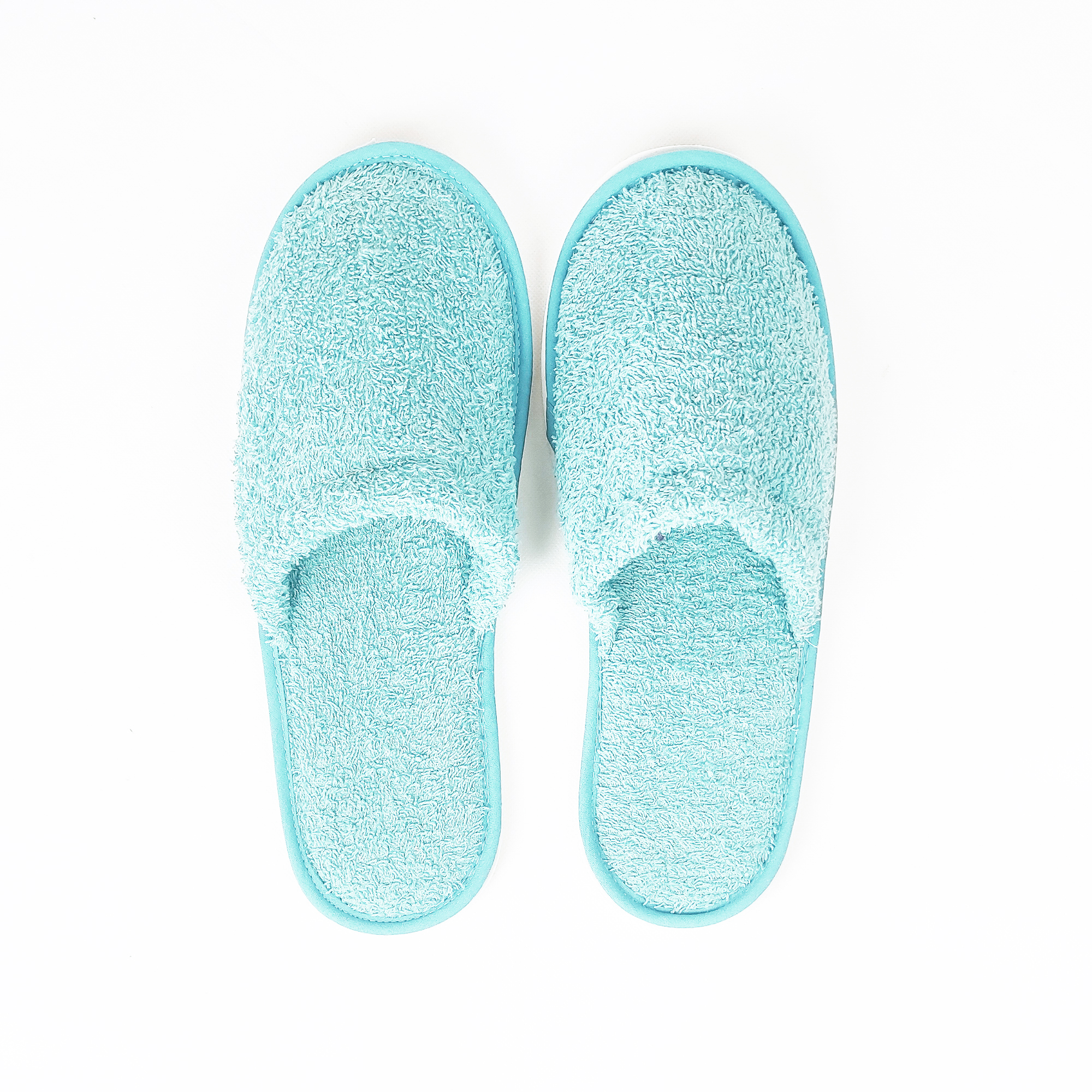Zapatillas color azul celadón de rizo algodón 100%.
